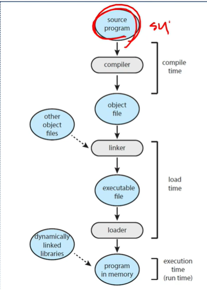 - 실제 프로그램에 로딩되면 physical 주소를 가진다