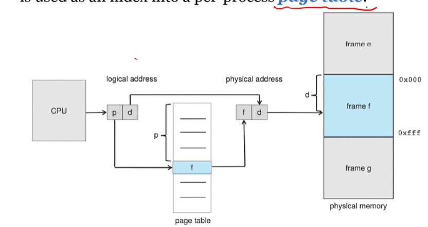 - 알게된 frame이라는 physical memory space로 들어가서 d라는 offset만큼 읽어준다
