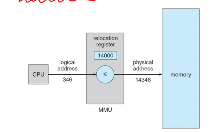 - relocation register에 14000번지가 있다면, 현재 메모리는 0x14000에 엑세스 되어있다.
