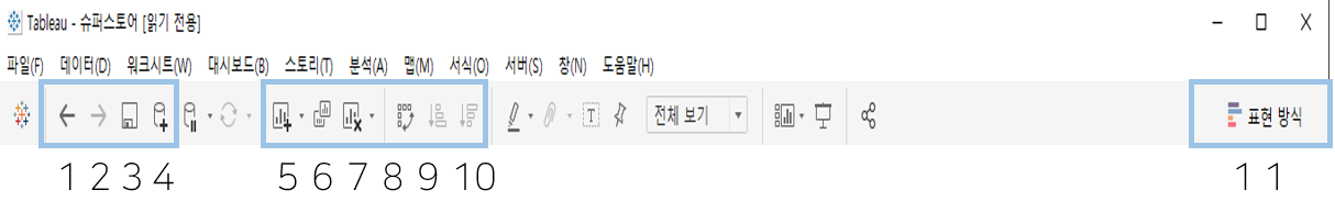 - 스토리보드(=워크시트+대시보드 모음, 파워포인트와 유사)